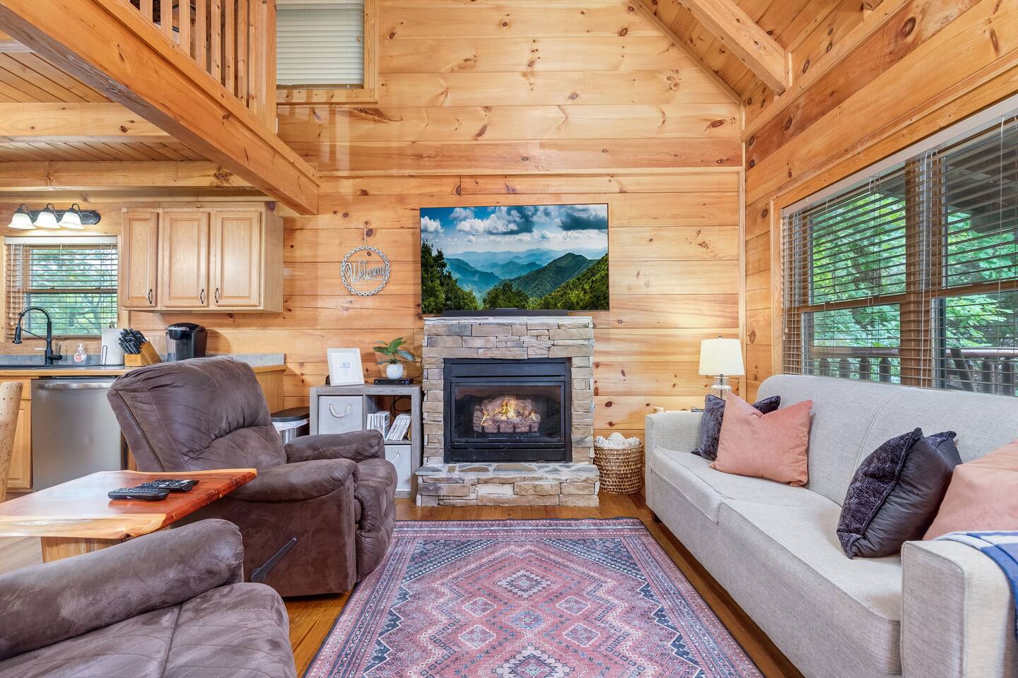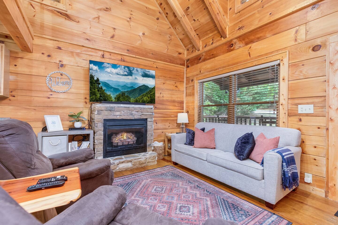 Carpe Diem is a cozy, comfortable cabin with amenities that will make it your home away from home. Located less than 5 miles from the Pigeon Forge parkway, offering quite, serene surroundings for the relaxation that you crave. Enjoy evenings by the natural stone fireplace, family time playing pool or arcade, watching movies, using our free WiFi, or unwinding from a day of hiking by soaking in the hot tub on the back deck.